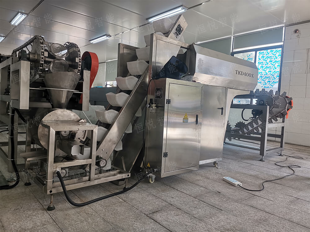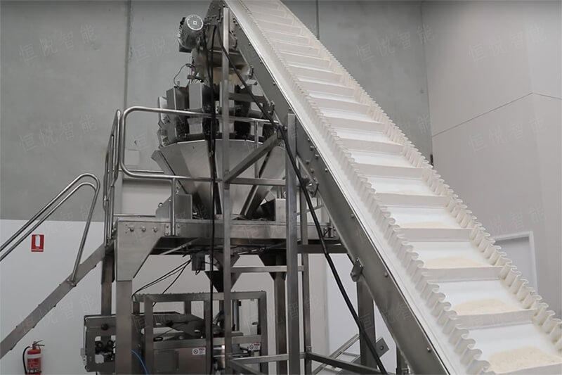 ②.全自動土豆粉午夜视频免费看:稱重裝置采用高精度多頭電子秤進行定量稱重包裝,通過用工作架台連接與午夜视频免费看配套可實現全自動稱重包裝,整套土豆粉自動包裝生產線包含大傾角上料機、設備工作平台、多頭電子秤、包裝主機、成品輸送機及其他附屬設施,整機具有包裝速度快效率高的特點但整體造價較高。