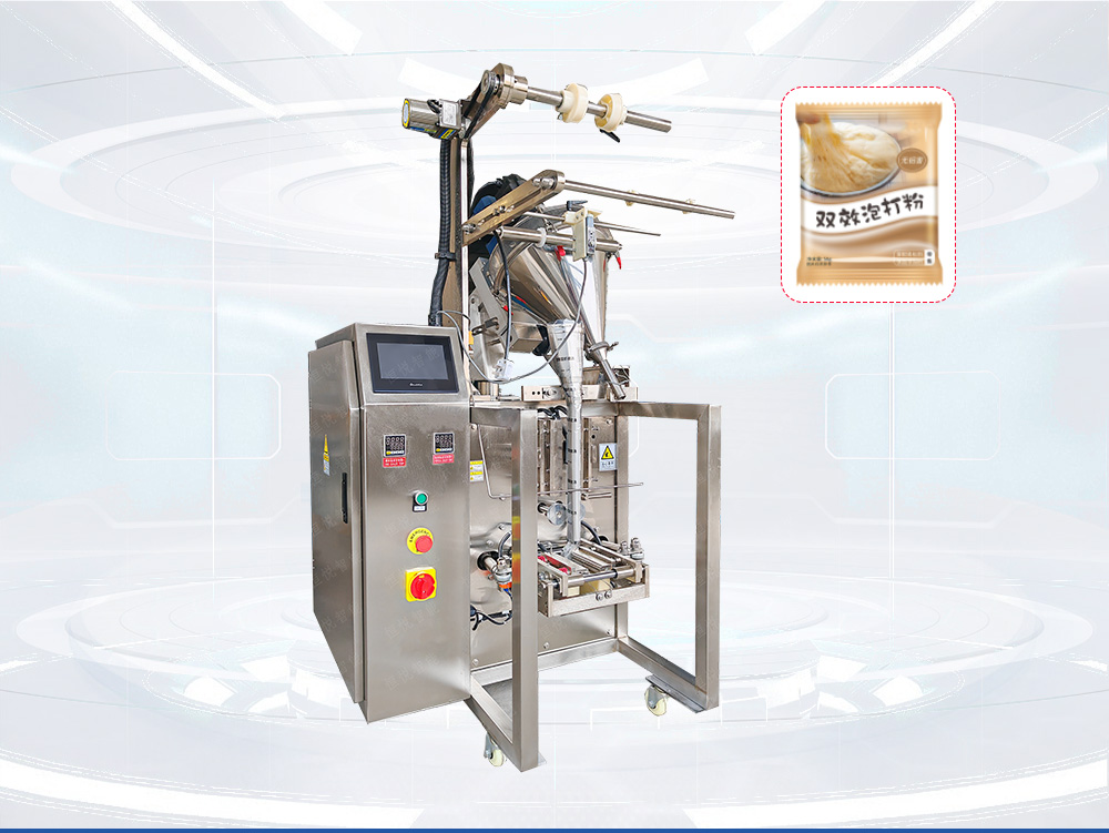 食品粉劑午夜视频免费看常用於具有流動性的粉末散料產品的自動計量分裝如蓮藕粉、泡打粉、白涼粉、固體飲料、代餐粉混合料等產品的小袋包裝,袋型可選擇背封長條袋、三邊封或背封袋型...